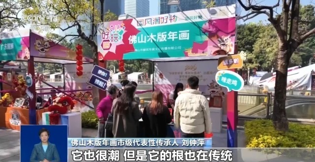 佛山木版年画市级代表性传承人 刘钟萍:我们创作年画的理念叫“潮得很传统”,它也很潮,但是它的根也在传统。在摊位可以看到非常受欢迎,我们都印不停。