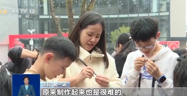 游客 尤泽林:一进来就感觉到马上临近的春节气氛特别浓郁,我还领了福字,准备过年带回家挂门上讨个好的寓意,非常吉祥。